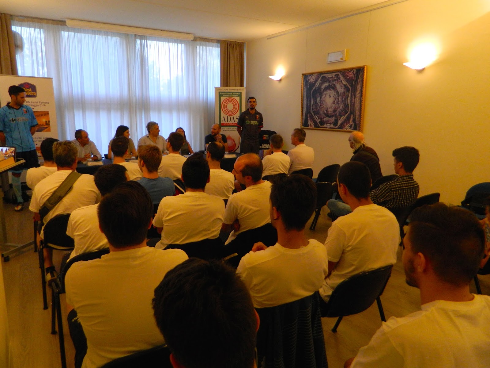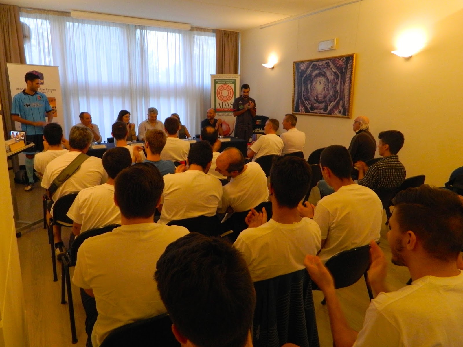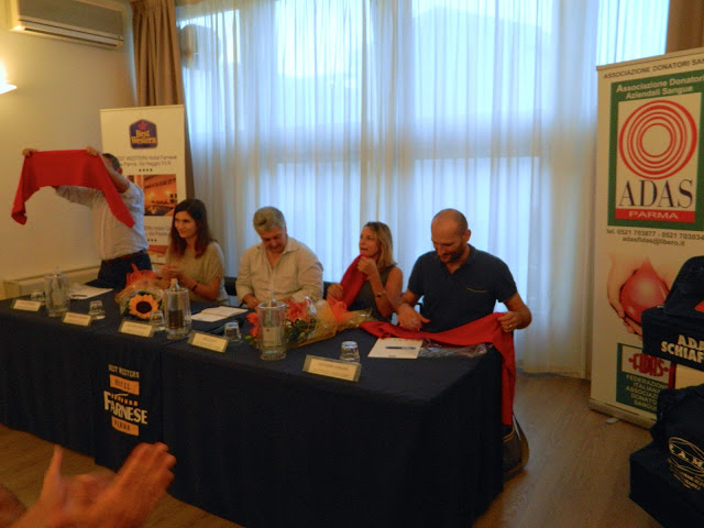 Si è svolta lunedì 7 settembre, nella meravigliosa cornice del BEST WESTERN HOTEL FARNESE di Parma, la presentazione ufficiale delle nuove divise da calcio dell’Adas Schiaffino, squadra amatori UISP di Parma, che dal 1978 calca i campi di Parma e provincia per diffondere la cultura della donazione del sangue.