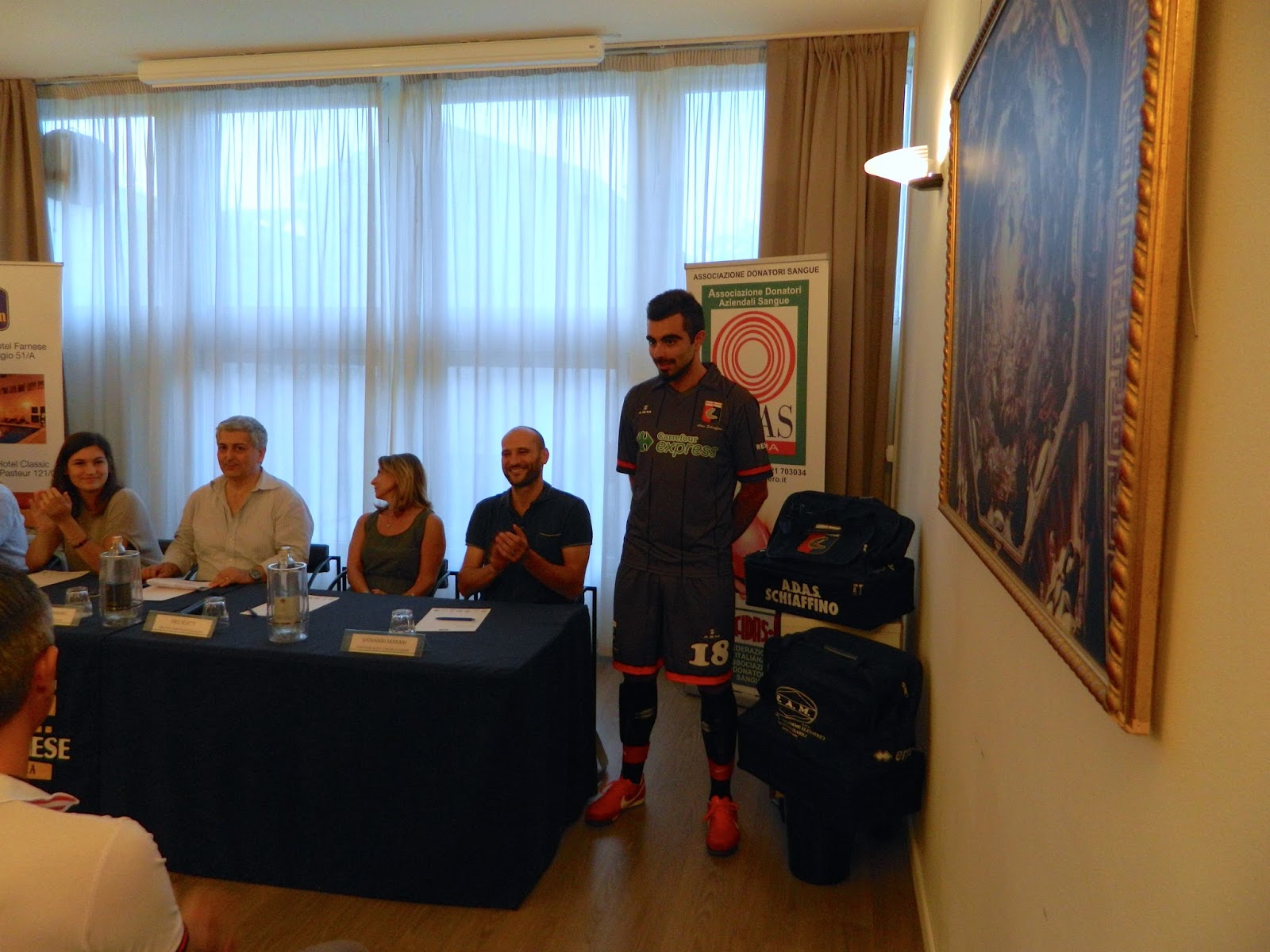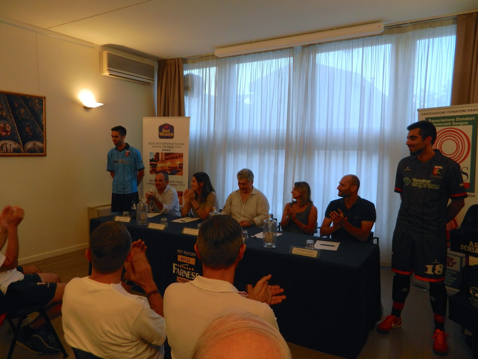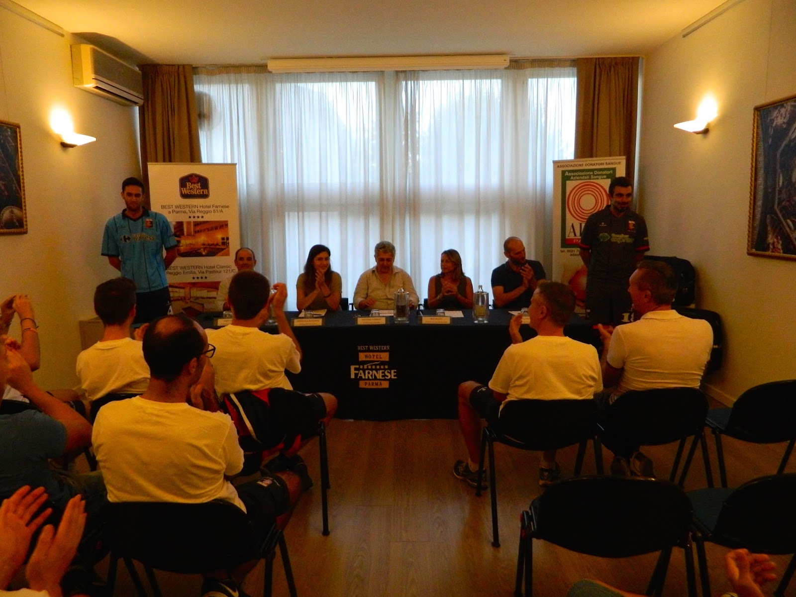 Si è svolta lunedì 7 settembre, nella meravigliosa cornice del BEST WESTERN HOTEL FARNESE di Parma, la presentazione ufficiale delle nuove divise da calcio dell’Adas Schiaffino, squadra amatori UISP di Parma, che dal 1978 calca i campi di Parma e provincia per diffondere la cultura della donazione del sangue.