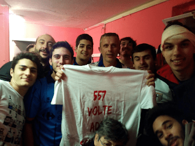 Sembra ieri quando lui lo racconta. 23 Settembre 1990, campo Amorini di San Pancrazio. Adas Schiaffino batte Ever Green 1-0 con gol di Pattera. Parte del gol è anche merito di un giovane debuttante, Roberto Delpogetto alla sua prima partita ufficiale adasina. Notato dal Cav. Fornaro nella trasferta francese di Chambéry (14 Aprile 1990), con gol a giro (Adas 3-0 Chambéry), viene subito arruolato tra le file rossoblu per volere del Presidente. Roberto da allora non si è mai stancato di quella maglia, se l’è fatta sua e l’ha sempre difesa con onore e passione, virtù di colui che non può che essere definito una bandiera. In un calcio in cui i valori vanno sempre mano mano scemando, in un calcio ormai ricco di atti violenti e poco sportivi, è bello sapere che esistono ancora persone che non si lasciano condizionare da tutto ciò. Il “Delpo” indossa la maglia adasina come fosse una seconda pelle da ben 27 anni e ieri, 11 Ottobre 2016 ha siglato la presenza numero 557. È record! Nessuno come lui ha mai raggiunto 557 presenze con l’Adas Schiaffino. Non si poteva festeggiare in modo migliore il 38º anniversario della nascita dell’associazione, vittoria schiacciante dell’Adas Schiaffino sull’Husky (2-0) e festeggiamenti per Roberto Delpogetto. La società per l’occasione ha regalato a Roberto una maglia, in segno di gratitudine e enorme rispetto con la scritta “557 VOLTE ADAS. DELPO UNICO”.