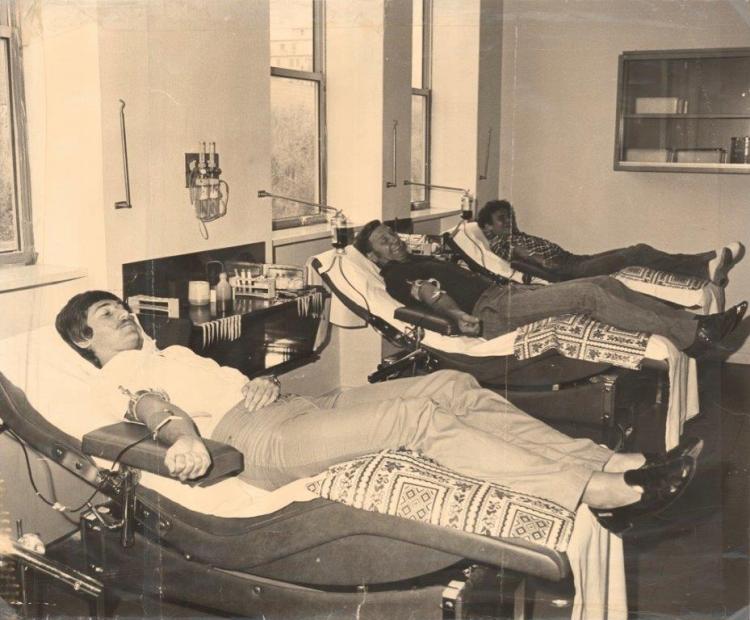 Noi lo vogliamo ricordare così come nella foto, mentre si sottoponeva al prelievo presso il Centro Trasfusionale dell’Ospedale Maggiore di Parma diretto allora dal Dottor Torsiglieri.